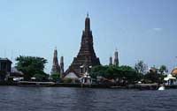 ワット・アルンとは暁の寺という意味だ(アルンは暁、曙の意味)。アユタヤー王朝時にはワット・マコークと呼ばれた小さな普通の寺院だったが、アユタヤー王朝崩壊後の戦乱の世を制したタークシン将軍がトンブリーに都を制定して王朝を開くと、この寺院をワット・チェーン(チェーンとはタイ文語で“夜明け”の意)と名付け最高の格式を持たせ、第一級王室寺院とした。